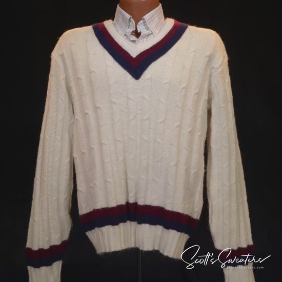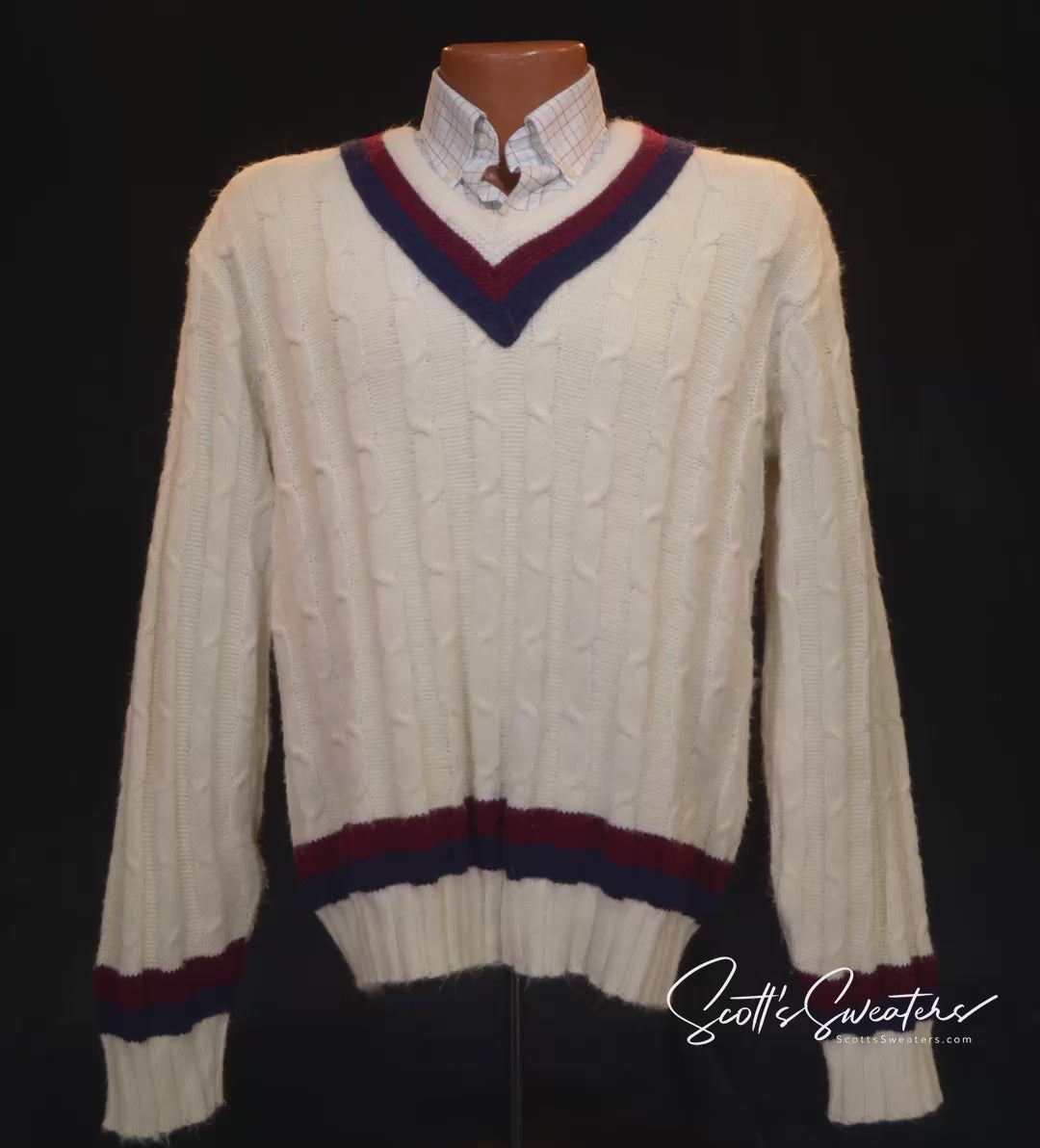 ペニーの 1960 年代のレトロなソフト アクリル V ネック ケーブルニット テニス セーター。