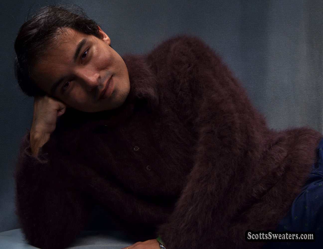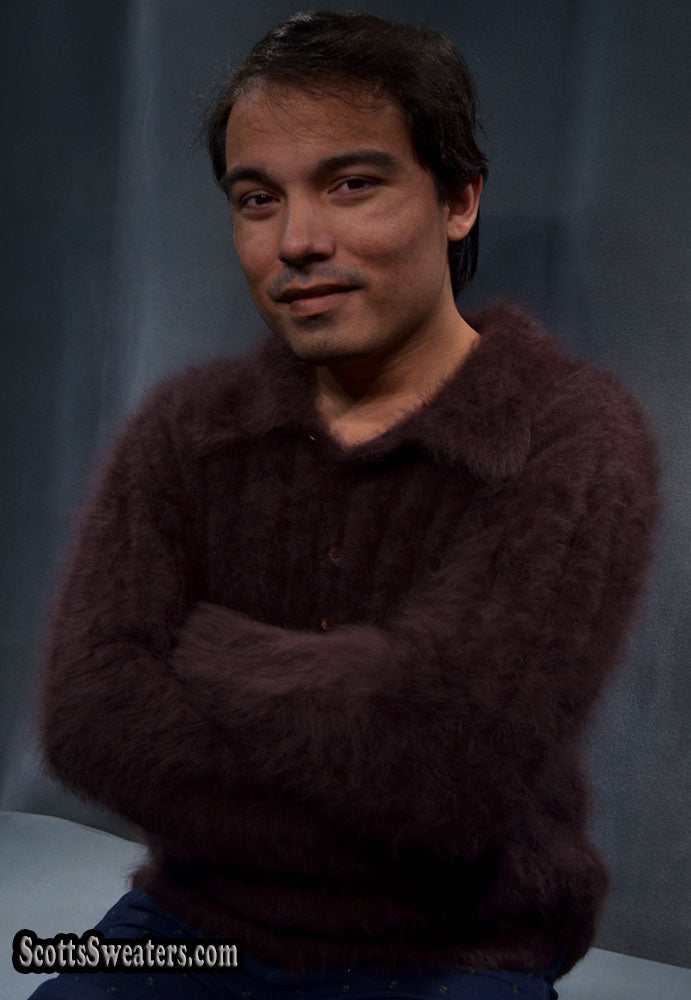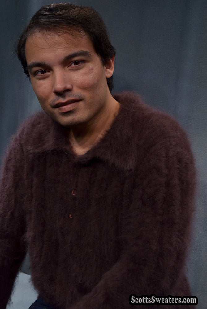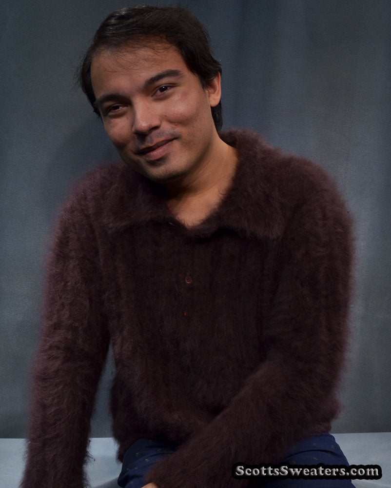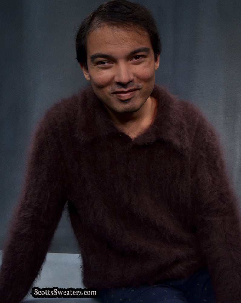 This is a very rare men's GUCCI polo-neck angora sweaters (pre-owned); only two in this style have ever come through my store. Wearing one of these is like wearing a cloud.