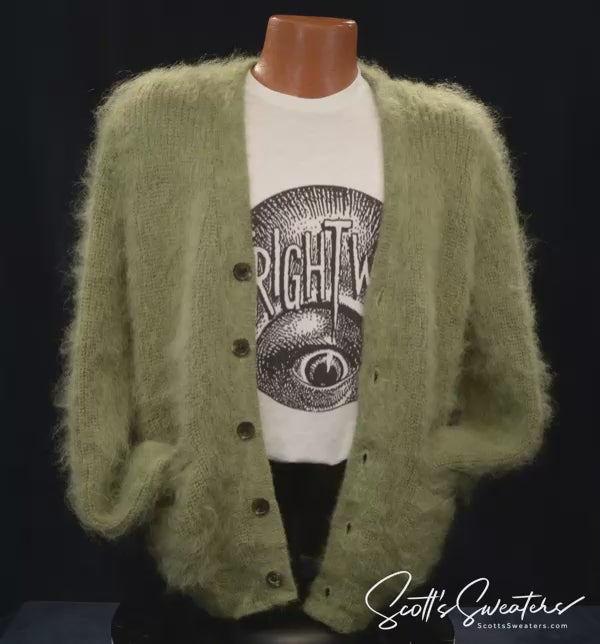 Kurt Cobain inspired Reproduced Men's Shaggy Green Mohair Cardigan Sweater