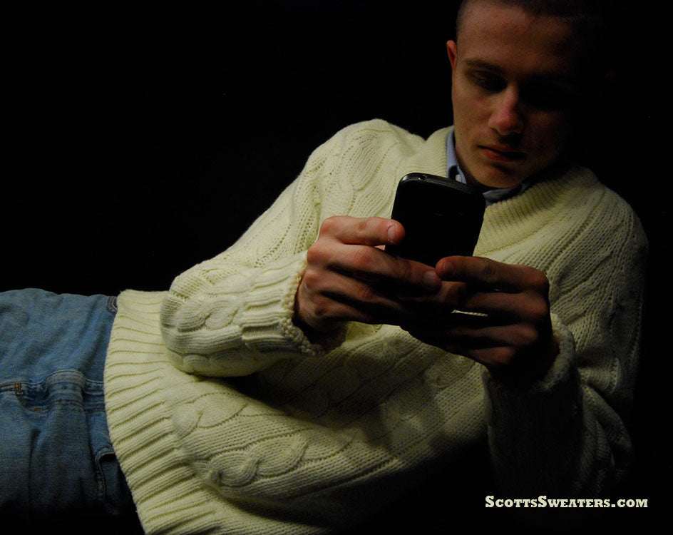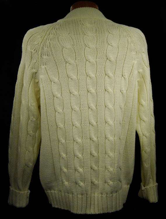 Men's Classic Retro Izod Ivory Cabled Tennis /Cricket Sweater
