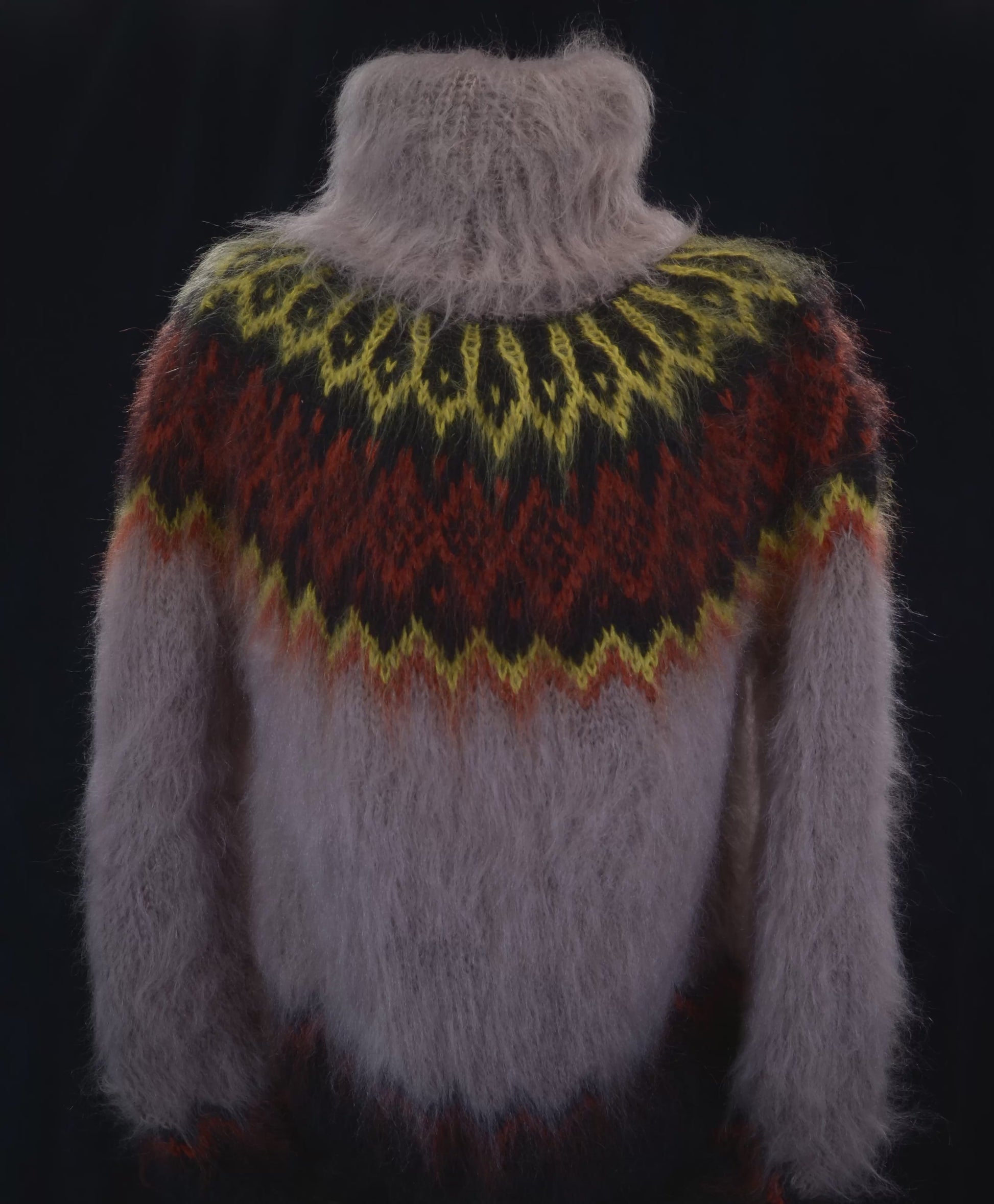 Luxurious hand-knit mink-colored turtleneck sweater made with top quality long-fiber mohair.