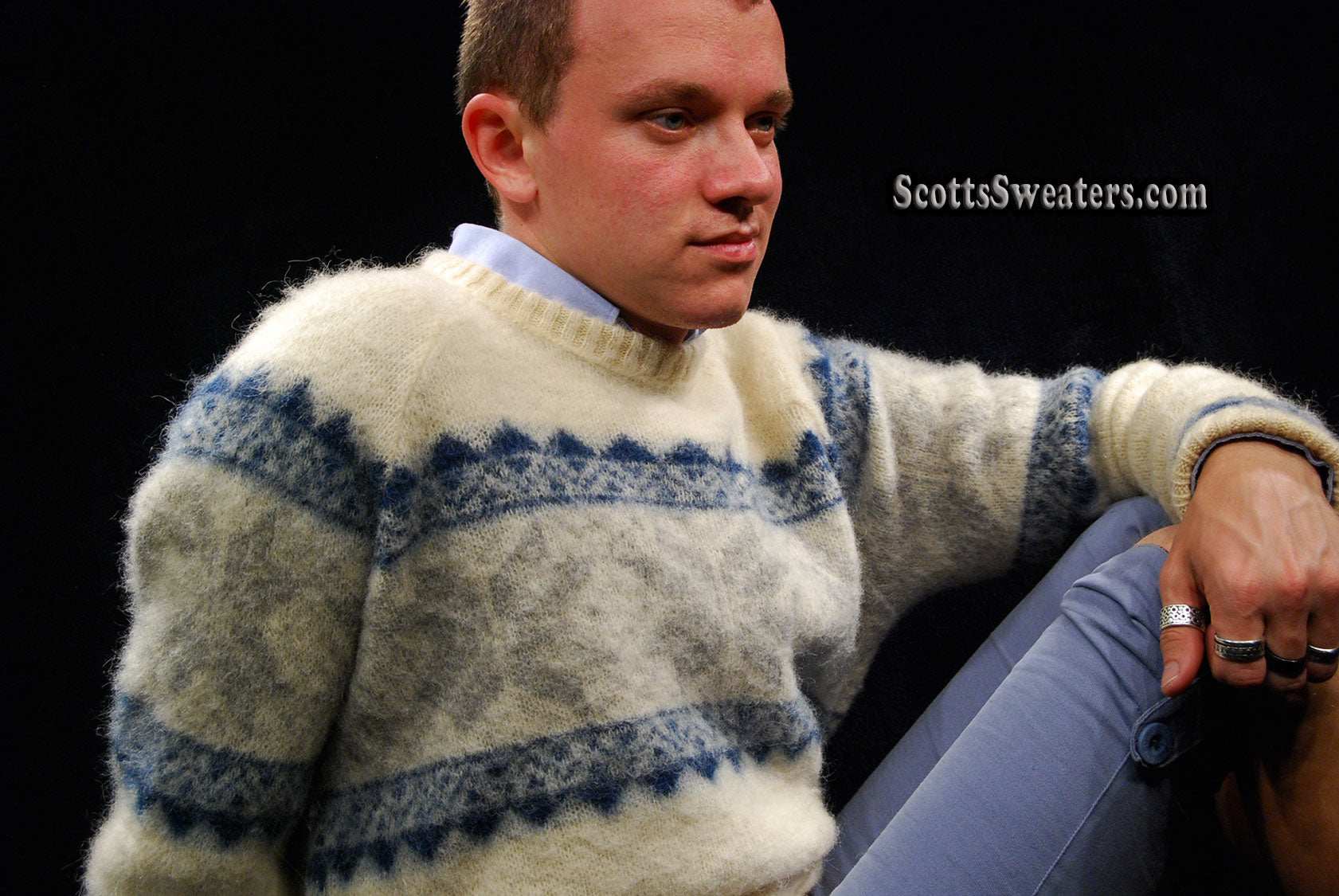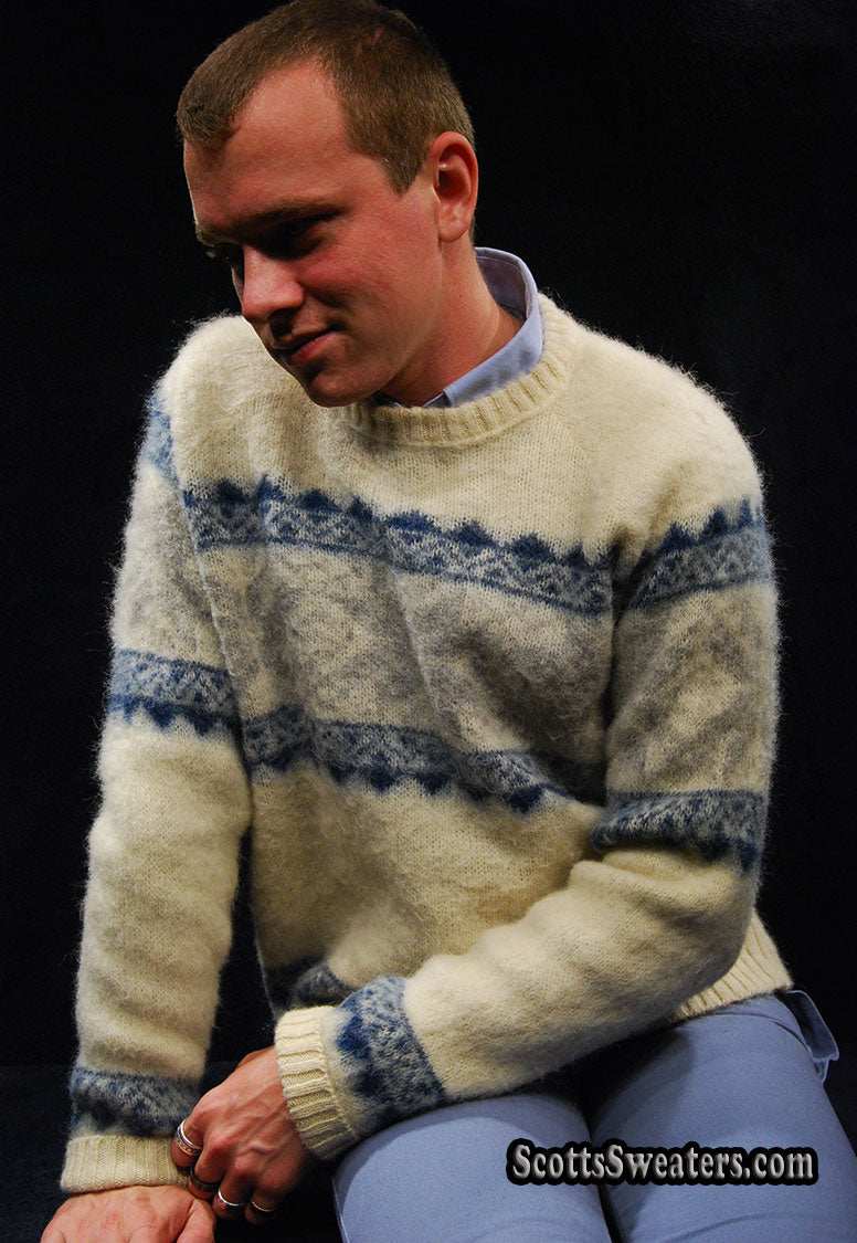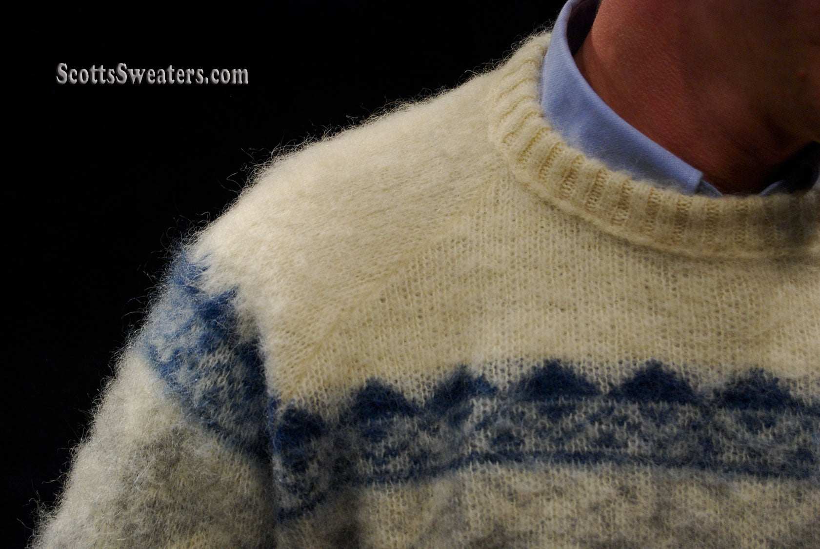 Men's Icelandic Wool Crewneck Sweater with Blue Design by Samband of Iceland