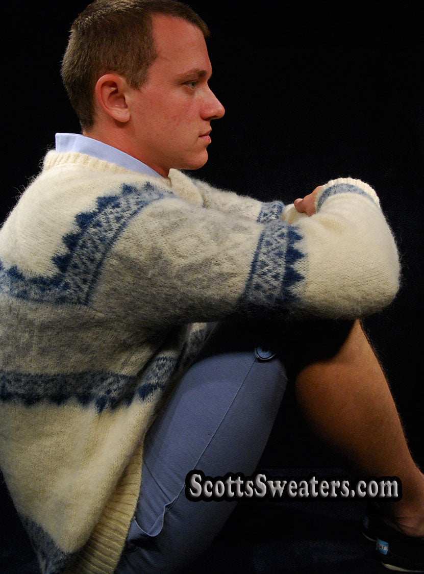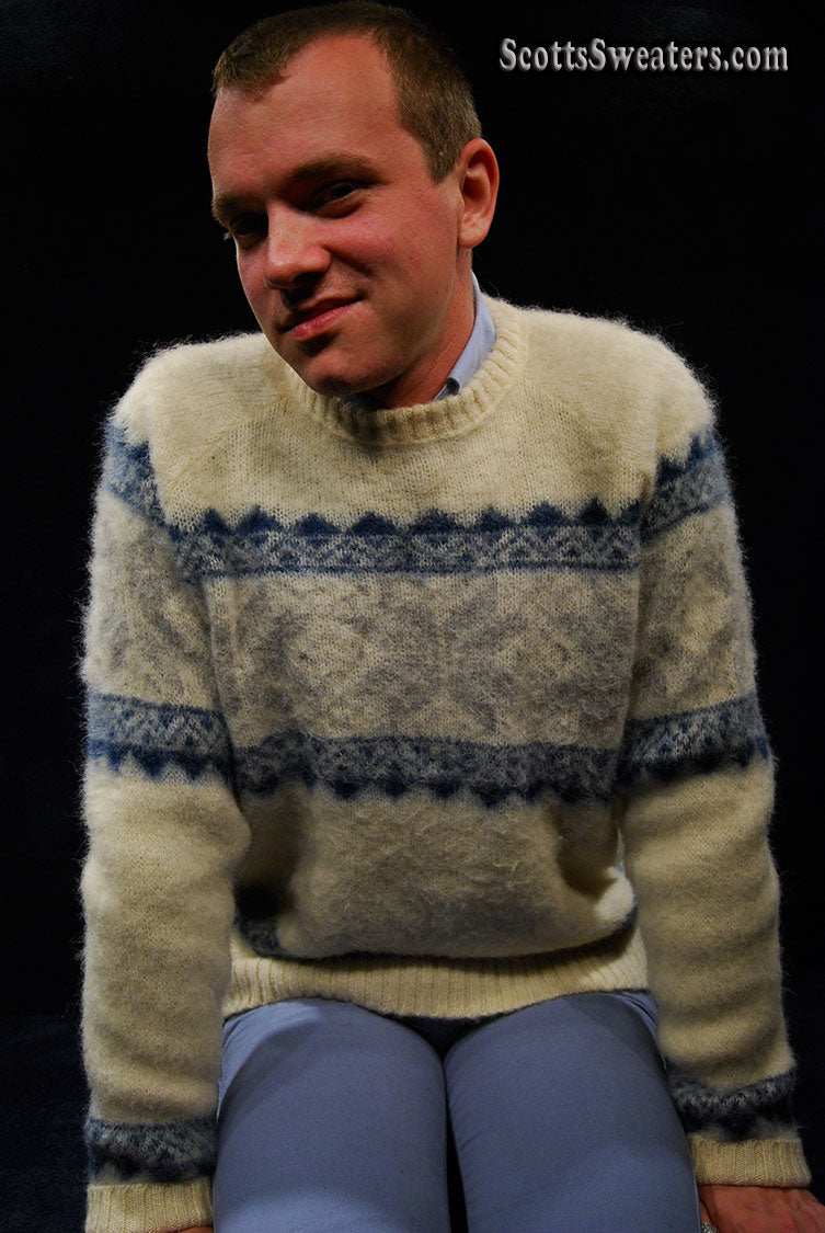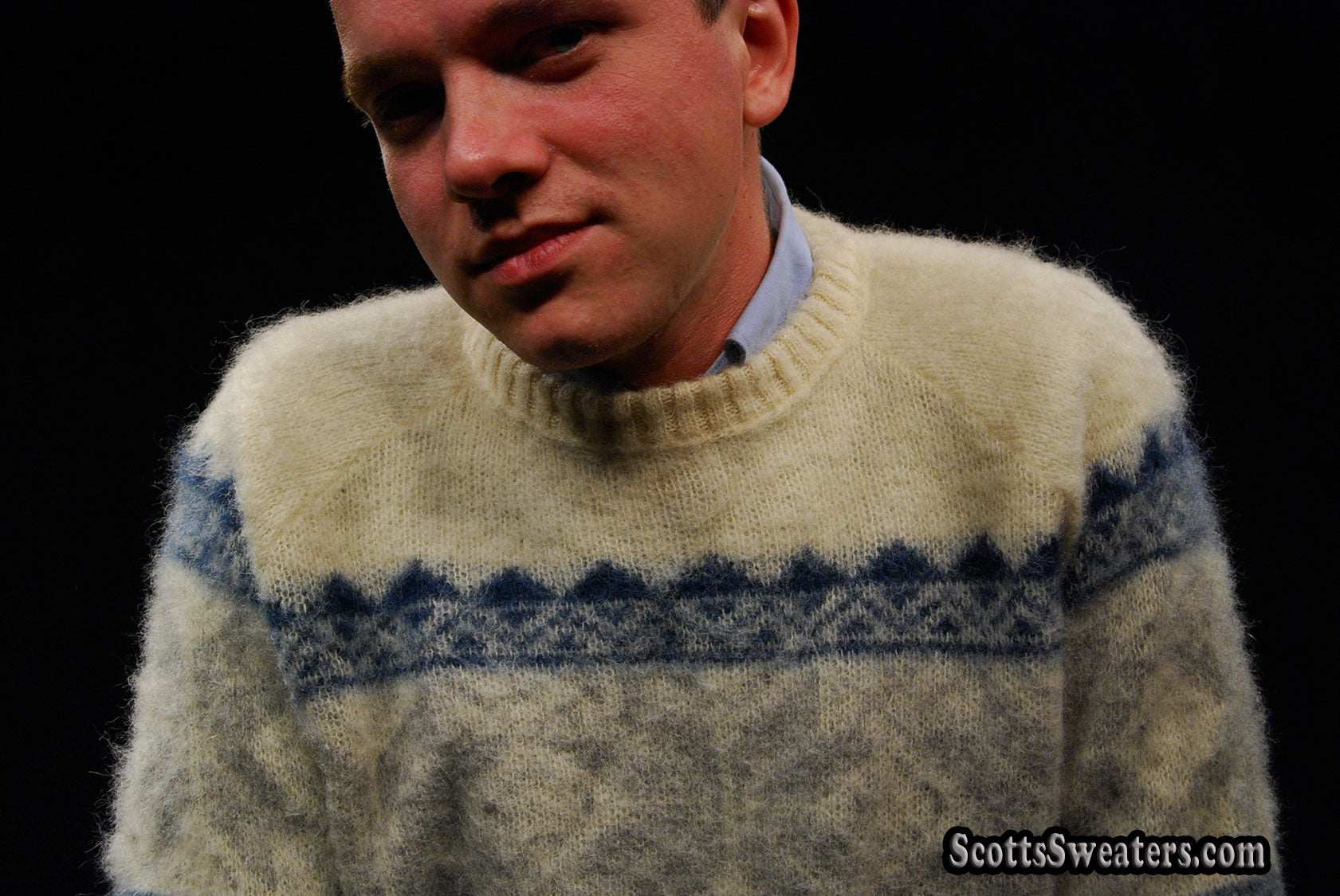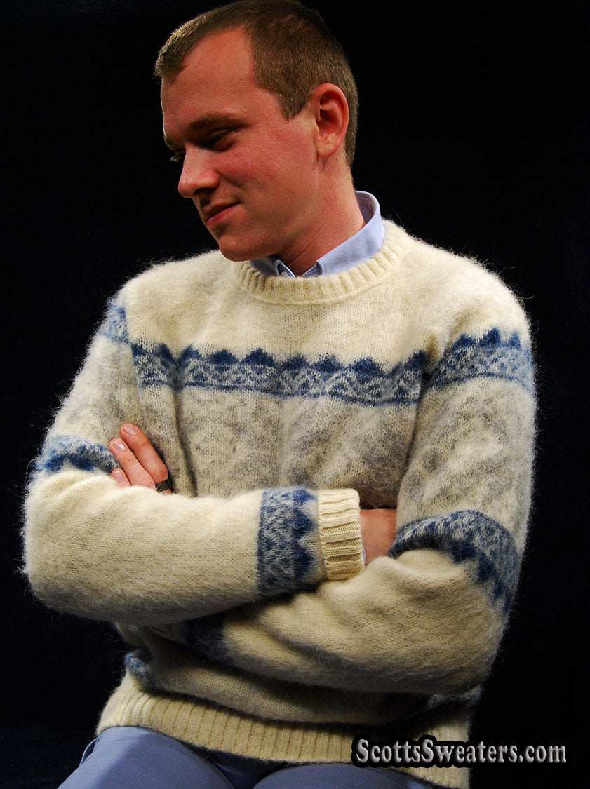 Men's Icelandic Wool Crewneck Sweater with Blue Design by Samband of Iceland