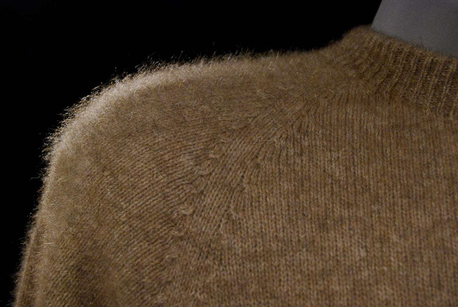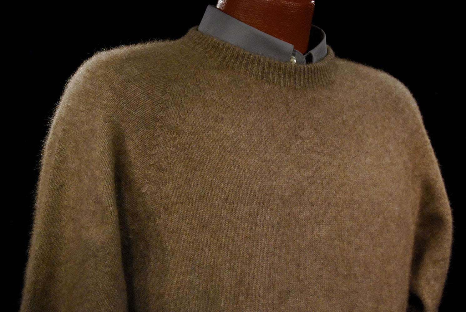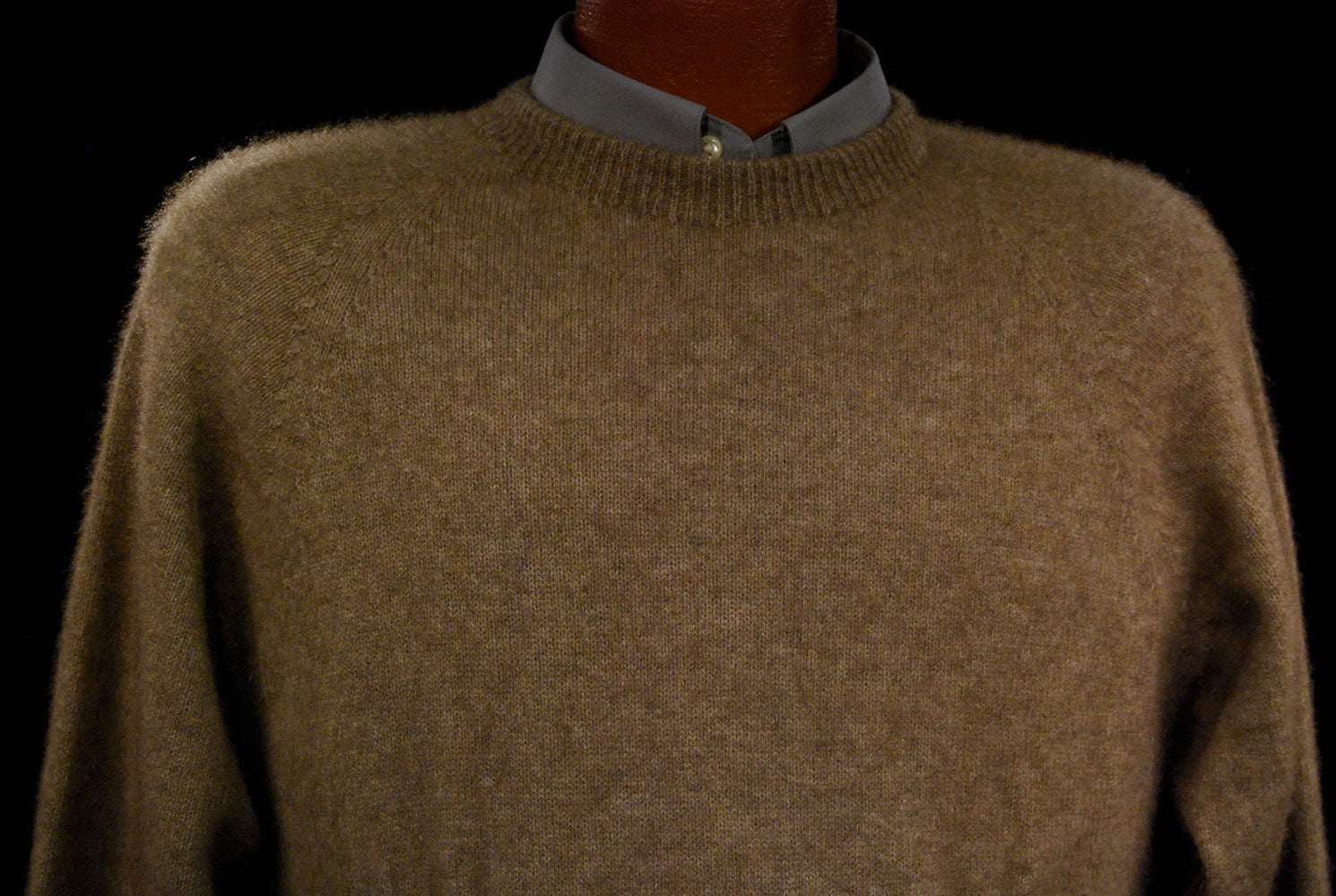 Possum colored crewneck sweater made from New Zealand possum fur yarn by Lothlorian of New Zealand