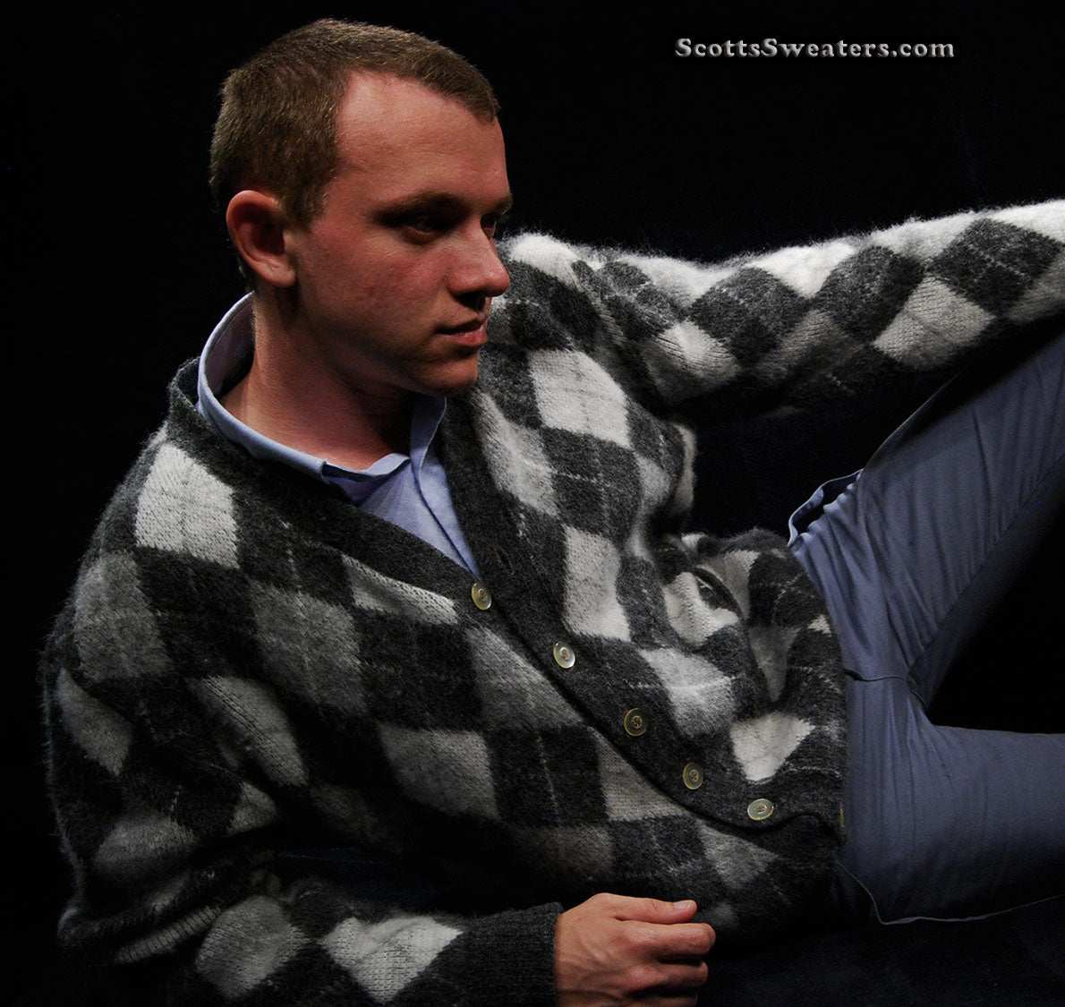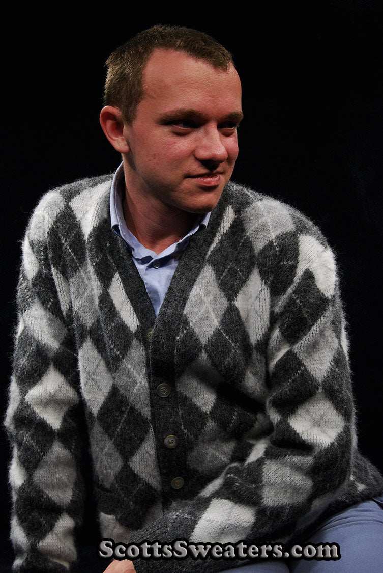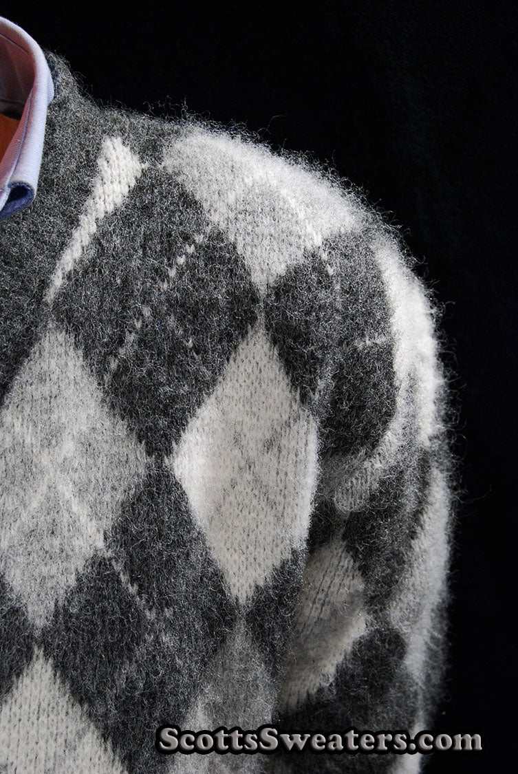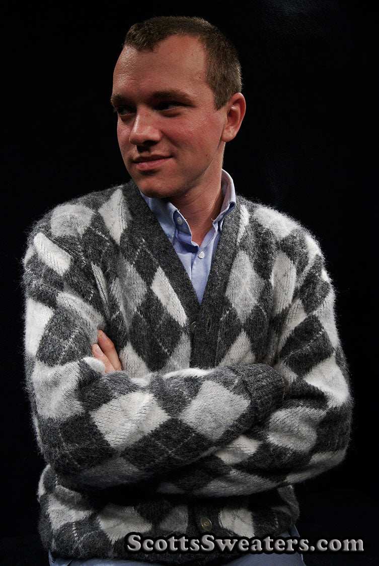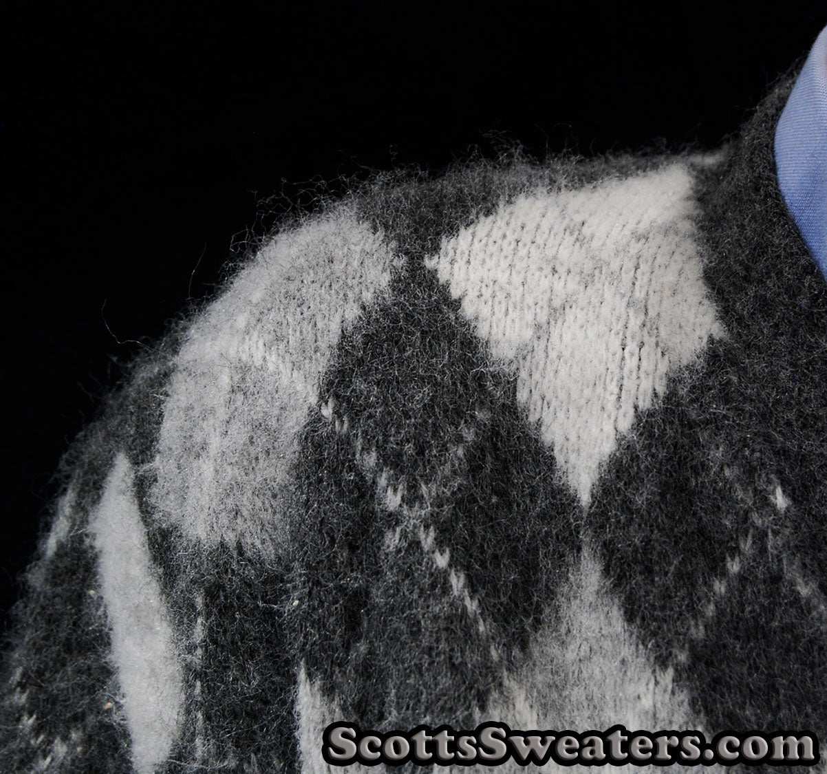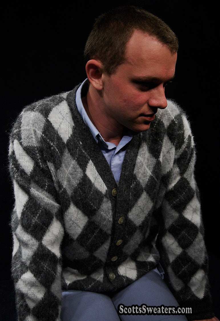 Multi-tone Grey argyle pattern faux-mohair button-front cardigan sweater w/front pockets by Arrow