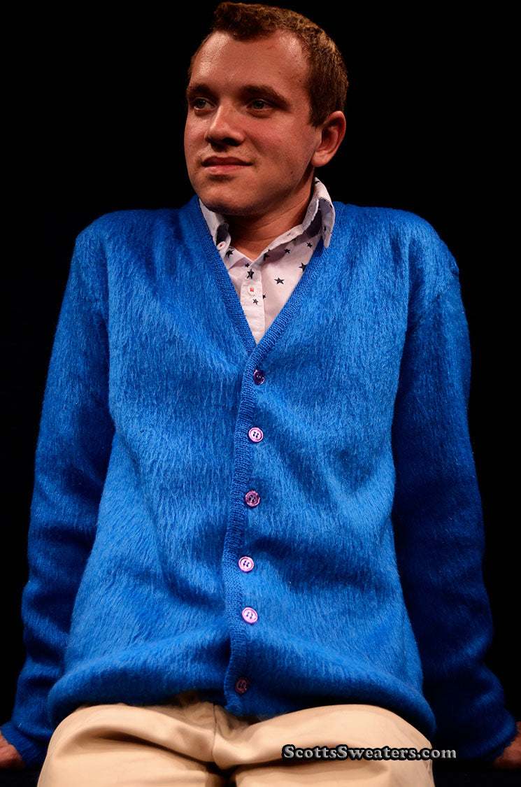 Men's royal-blue retro mohair cardigan sweater by Brent