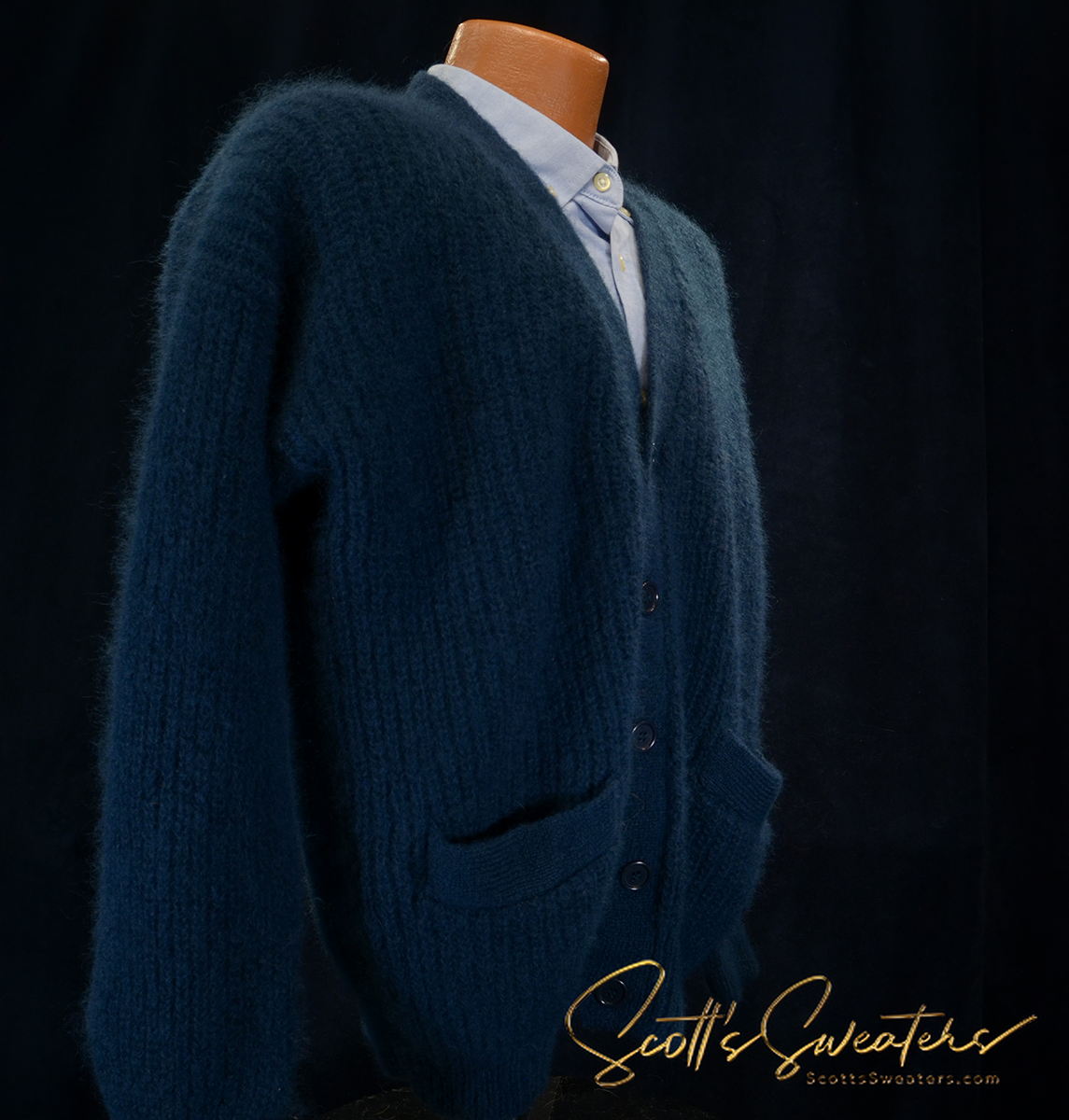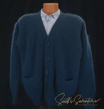 Men's Teal-Green Rib-knit Mohair Cardigan Sweater by WilliWear-WilliSmith
