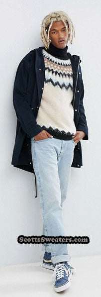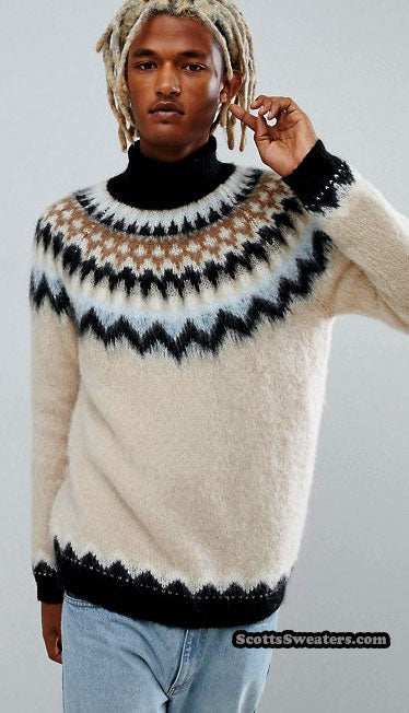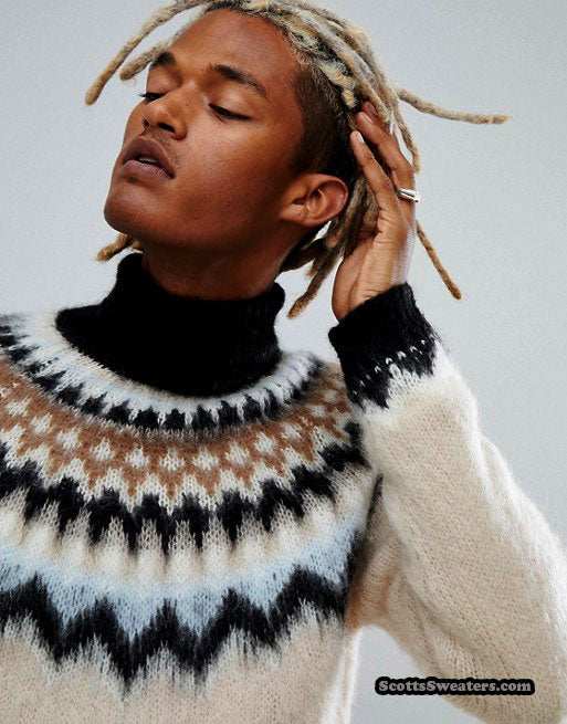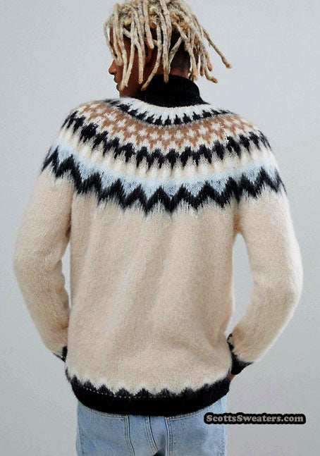 Men's Turtleneck Mohair Sweater in Fair Isle Design