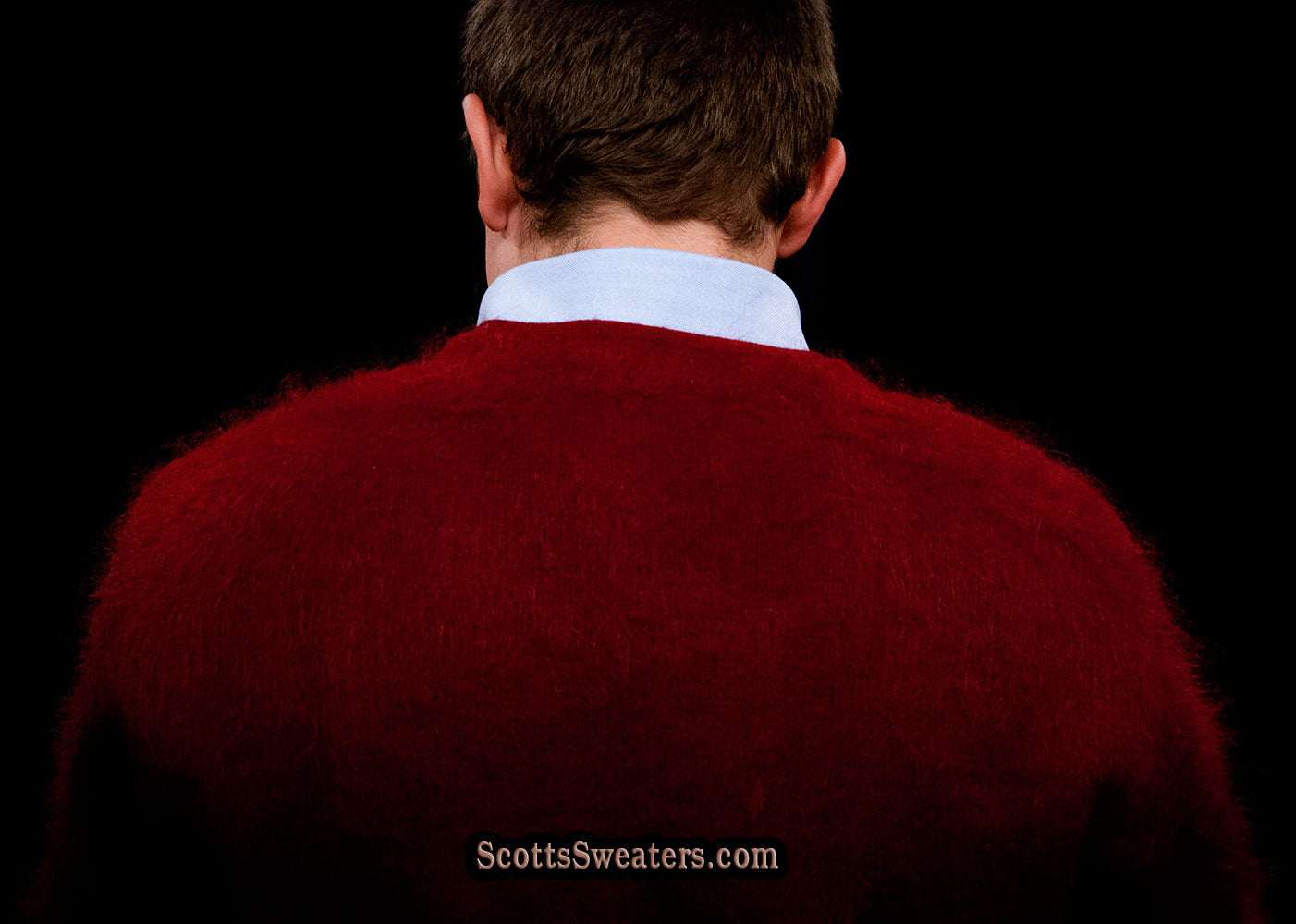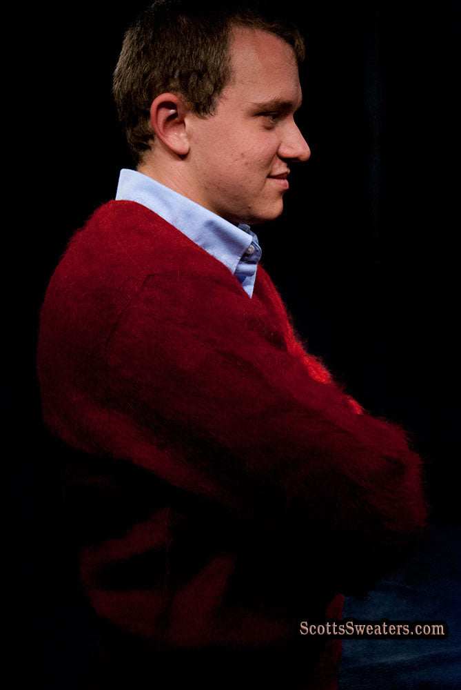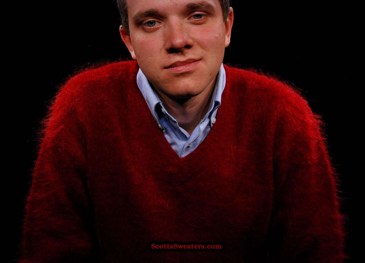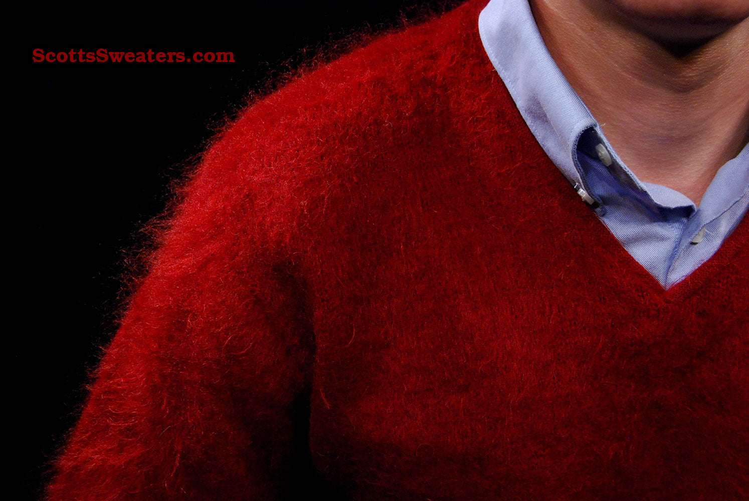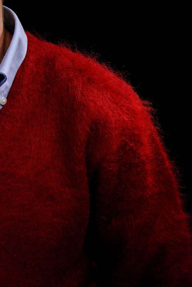 Red Retro Classic Original British Mohair V-Neck Sweater by Lazarus - Glasgo Ltd.
