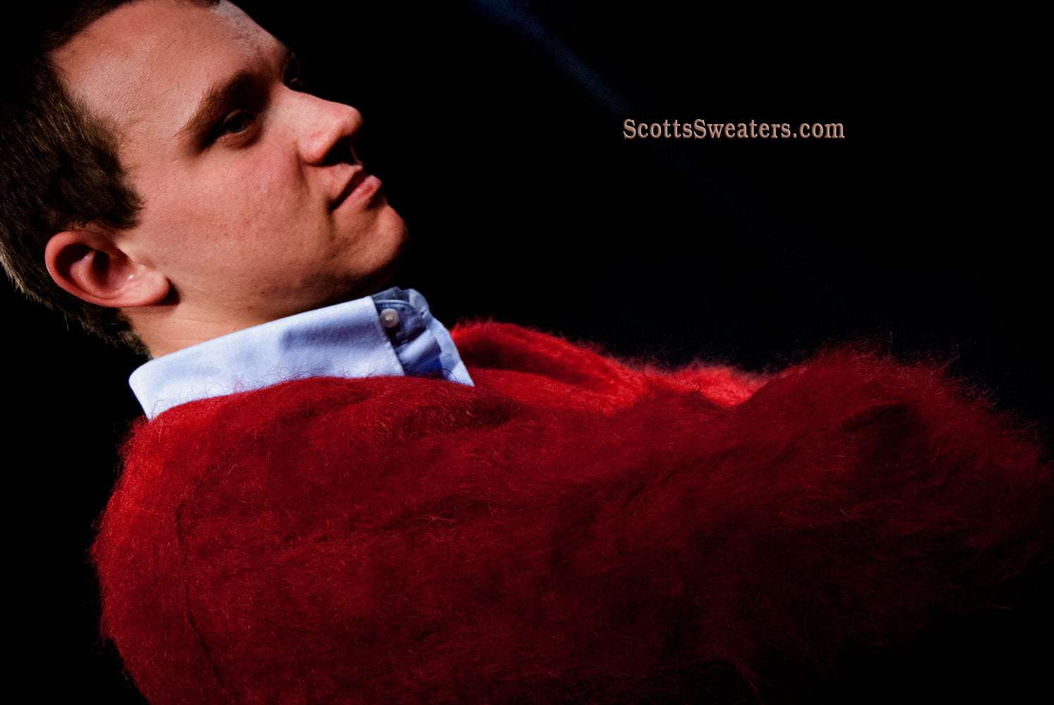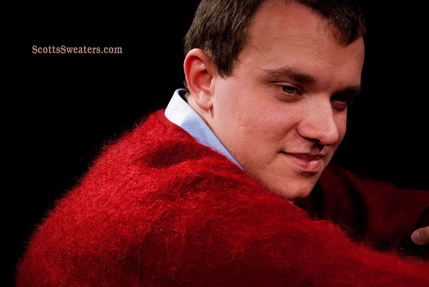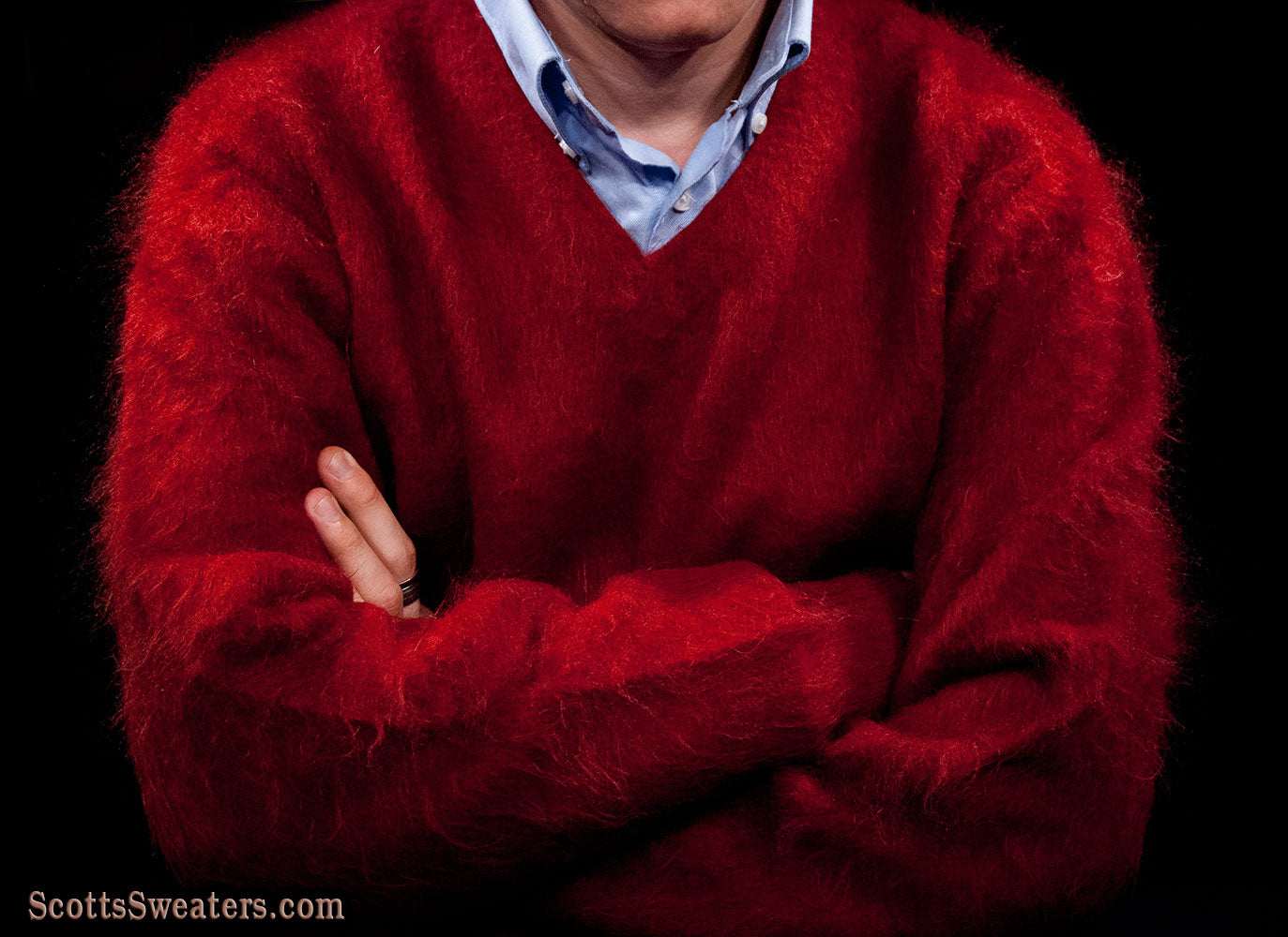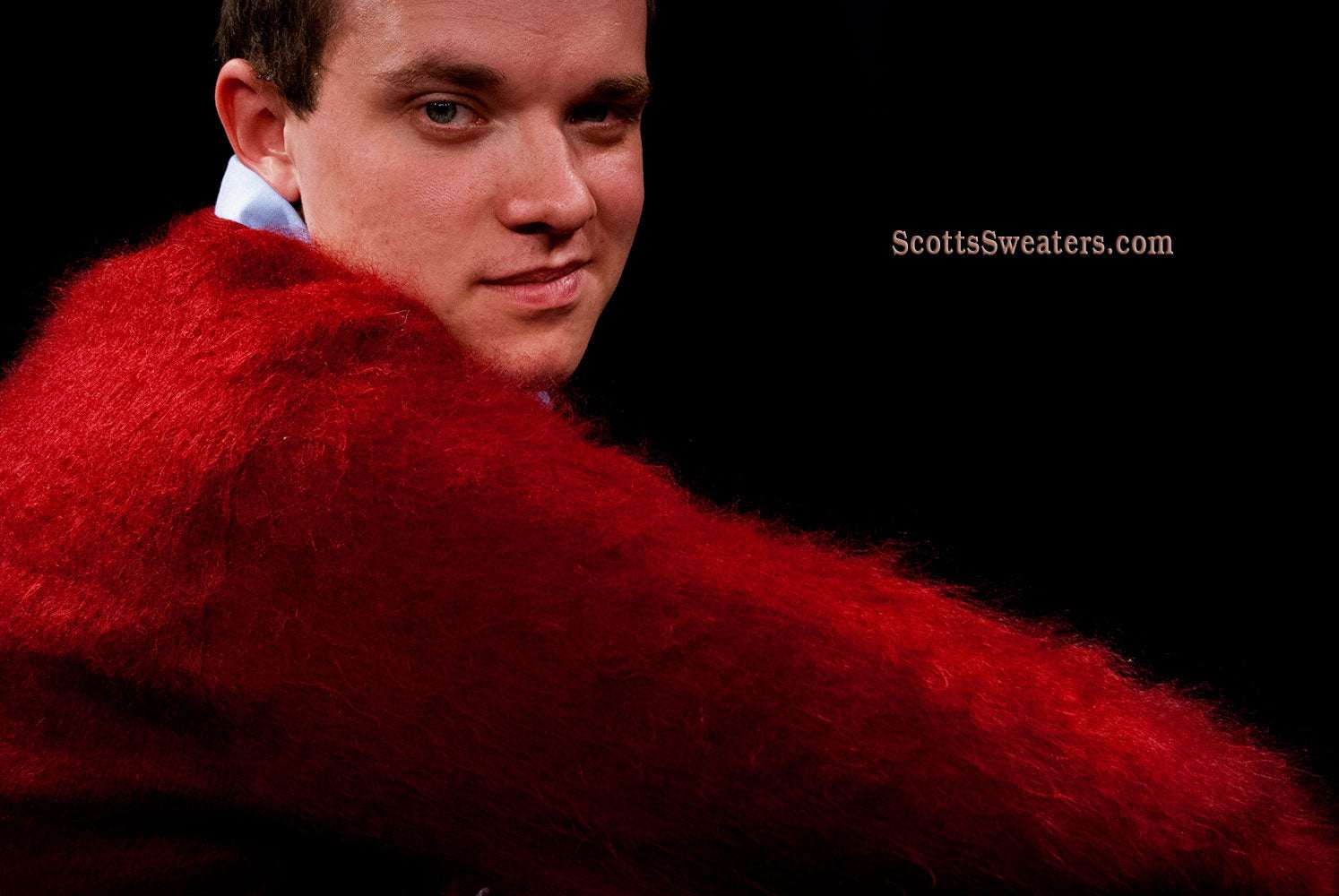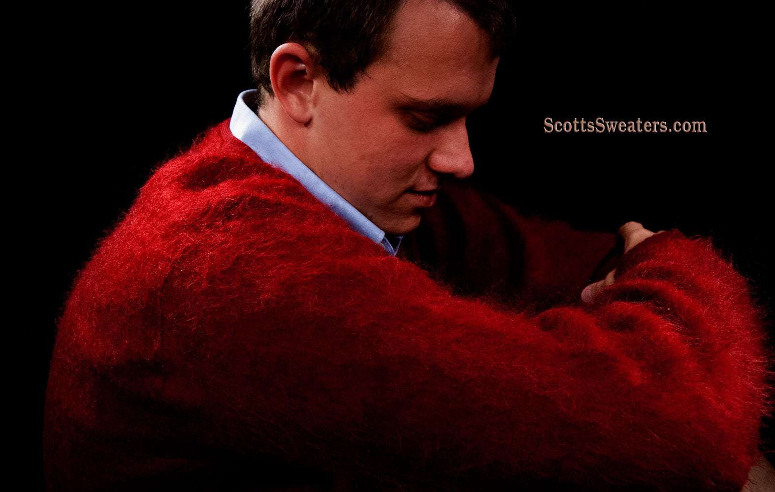 Red Retro Classic Original British Mohair V-Neck Sweater by Lazarus - Glasgo Ltd.