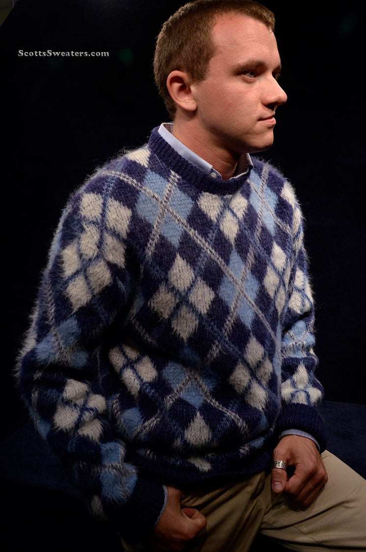 Retro Argyle Shaggy Crewneck Mohair Sweater