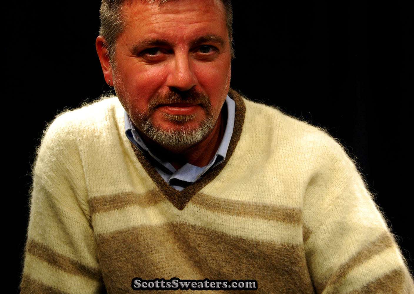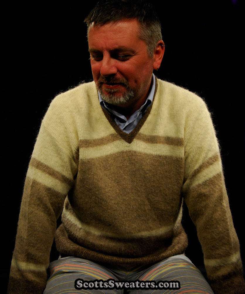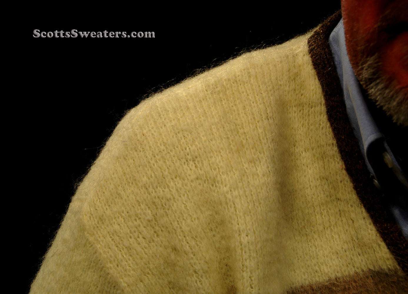 Tri-tone beige, tan, brown retro mohair V-neck pullover sweater by Hamburgers Menswear of Baltimore
