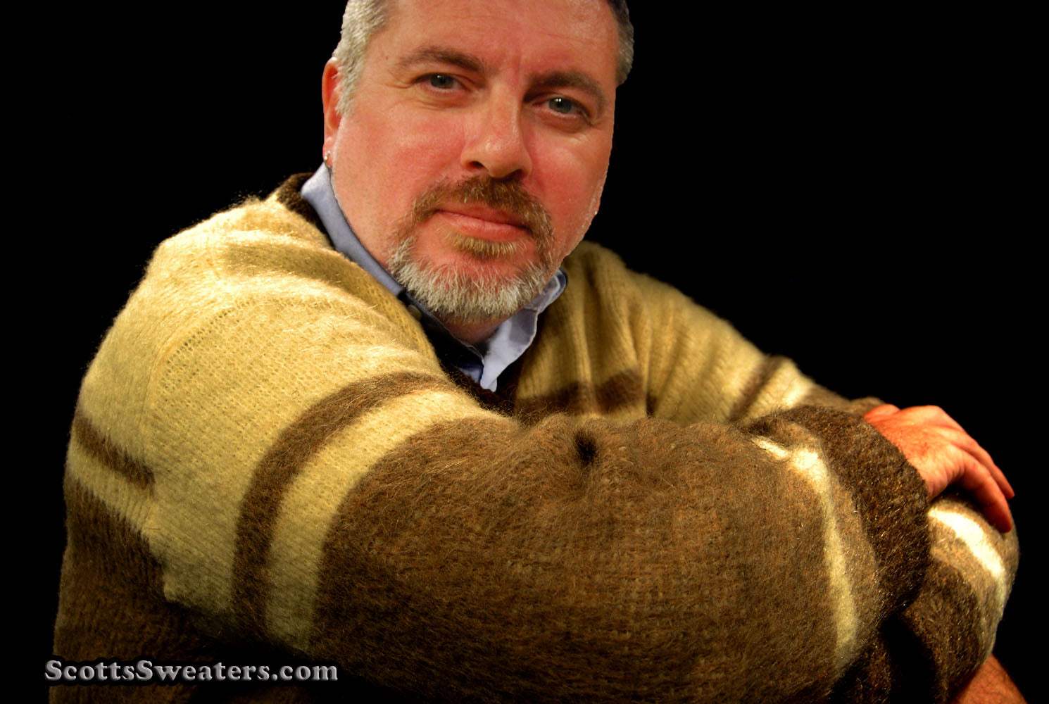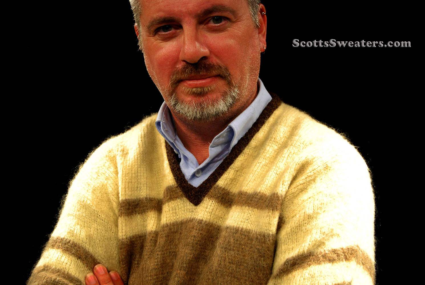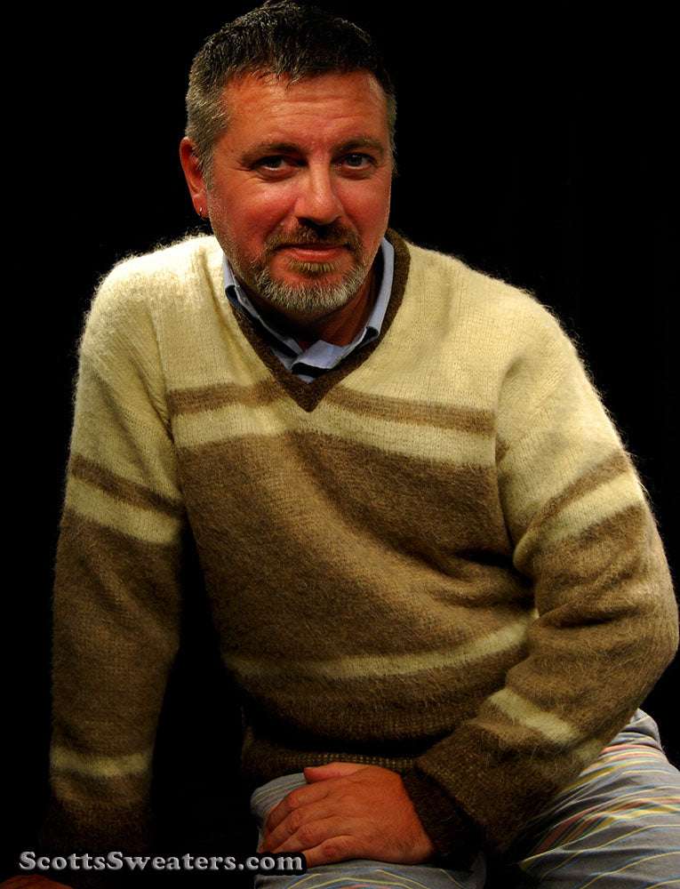 Tri-tone beige, tan, brown retro mohair V-neck pullover sweater by Hamburgers Menswear of Baltimore