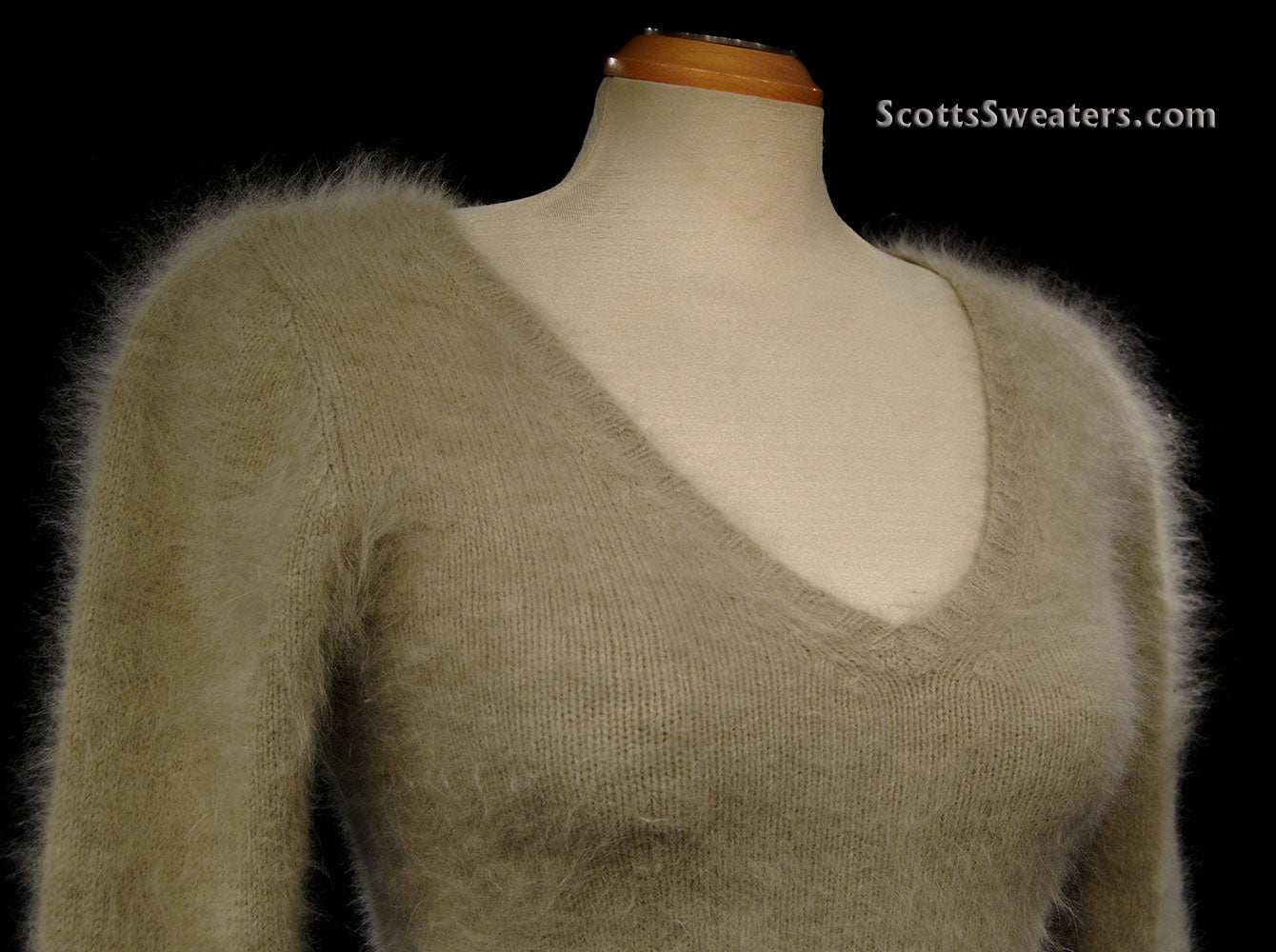 Angora Scoop-neck pullover sweater by Banana Republic in a cling-fit design.