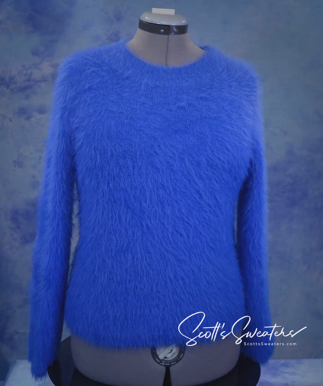 Woman's Fuzzy Royal-Blue Plush Eyelash Crewneck Sweater by Lou & Grey