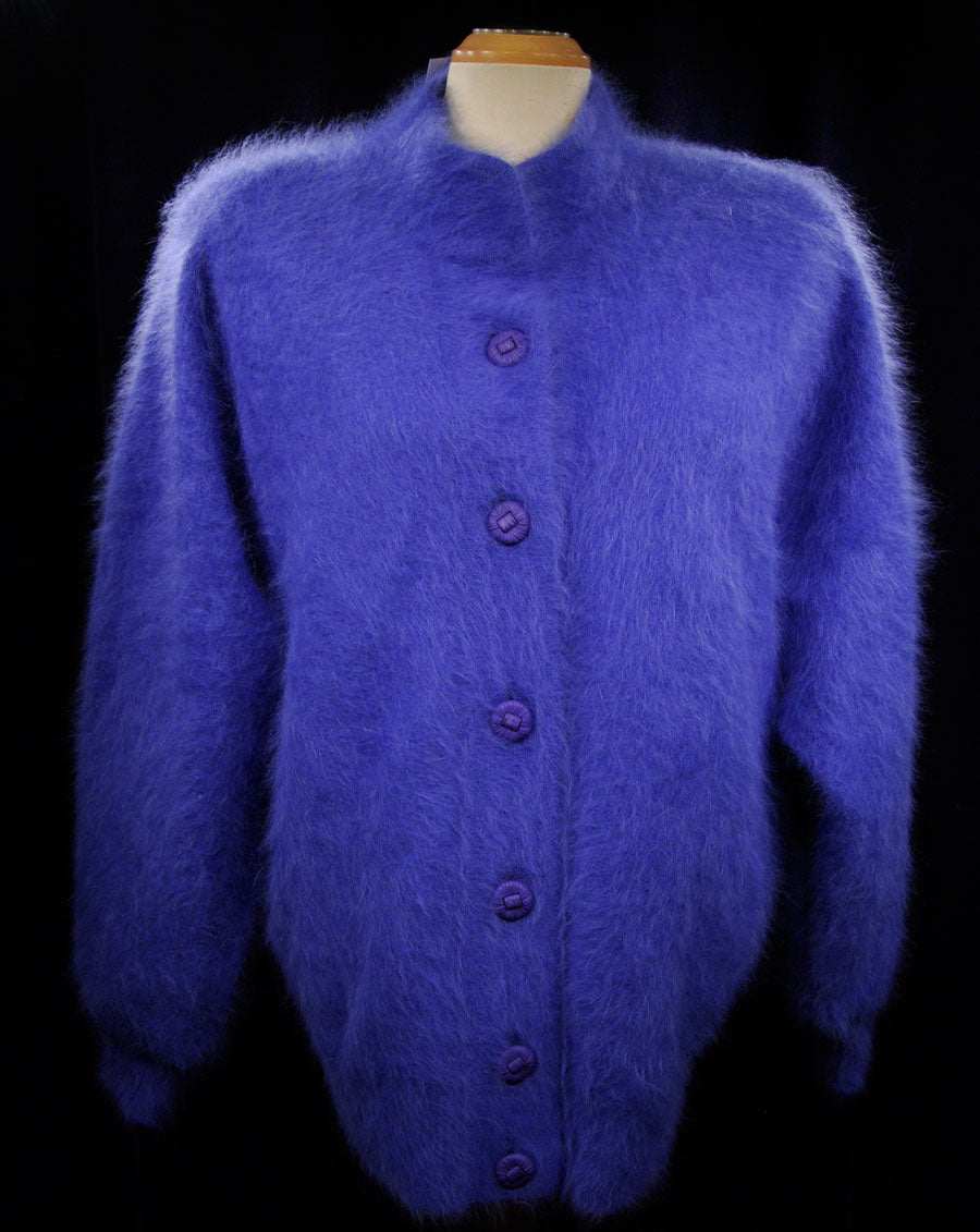 Woman's Powder-blue Angora Cardigan Sweater by Venesha