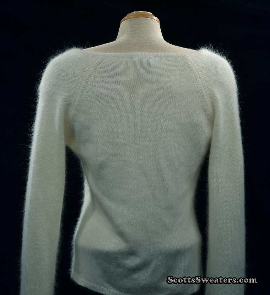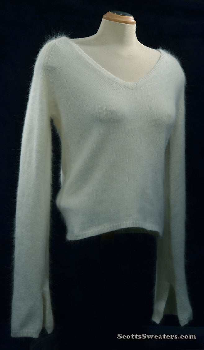 Woman's White Angora Split-cuffs V-neck Sweater by H&M