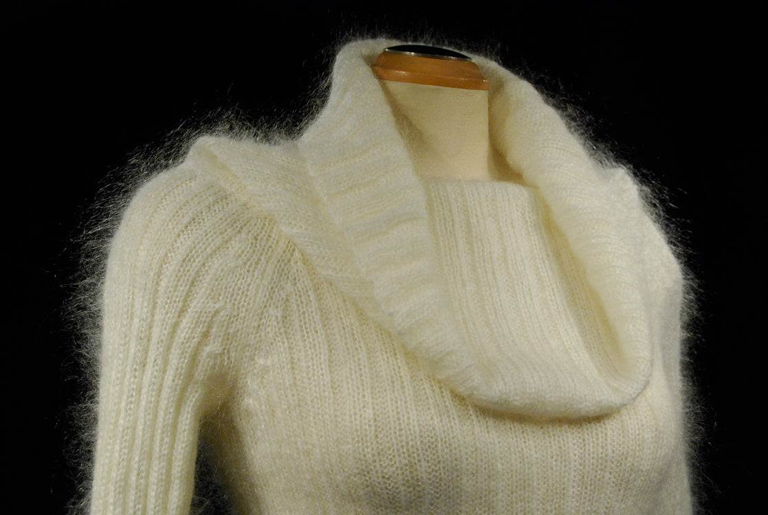 White fuzzy mohair deep cowlneck pullover sweater by The Limited