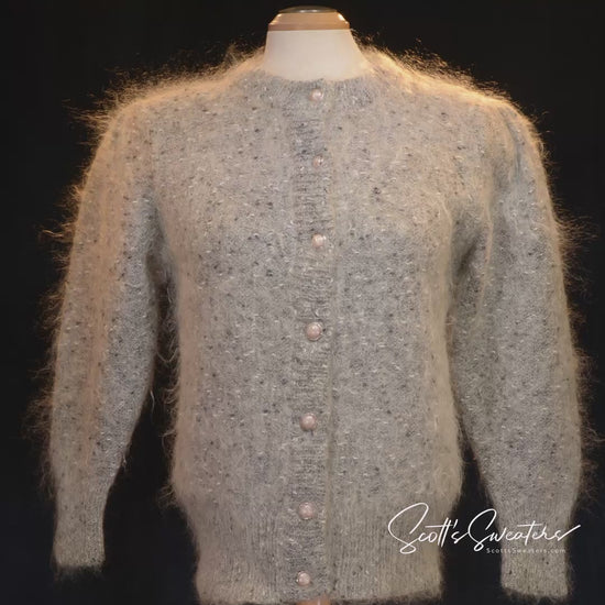 Women's speckled-grey mohair button-front cardigan sweater w/pearl-like buttons by King Sheep Ladies Fashion